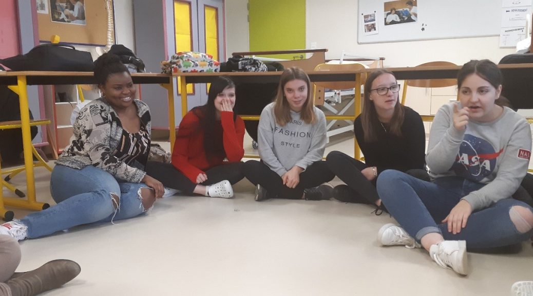 L’atelier a commencé par une présentation de Mme de Courson, sur son travail et de l’importance de l’éveil chez les enfants. Puis une mise en pratique a eu lieu. Les élèves ont été invitées à venir s’asseoir en cercle au sol, et l’atelier a pris une autre tournure.