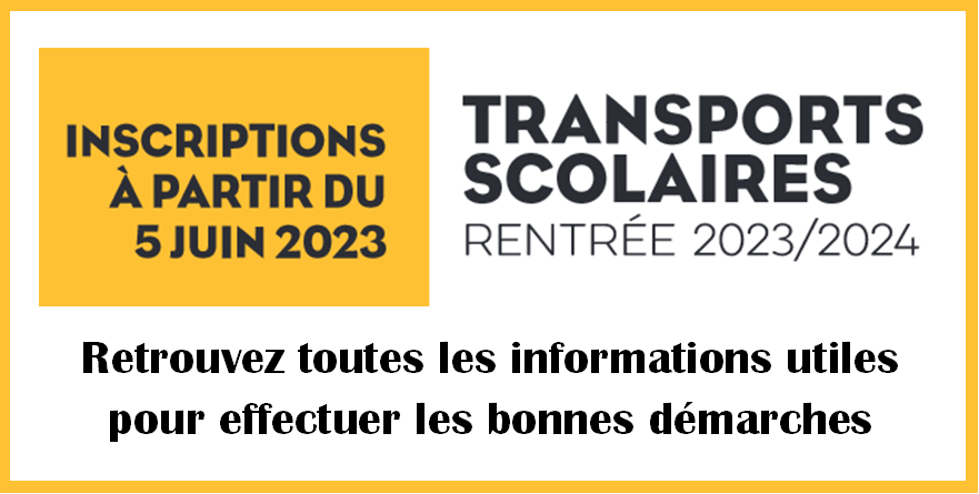 Le site d’inscription aux transports scolaires pour l’année 2023/2024 est ouvert depuis le 5 juin 2023.
