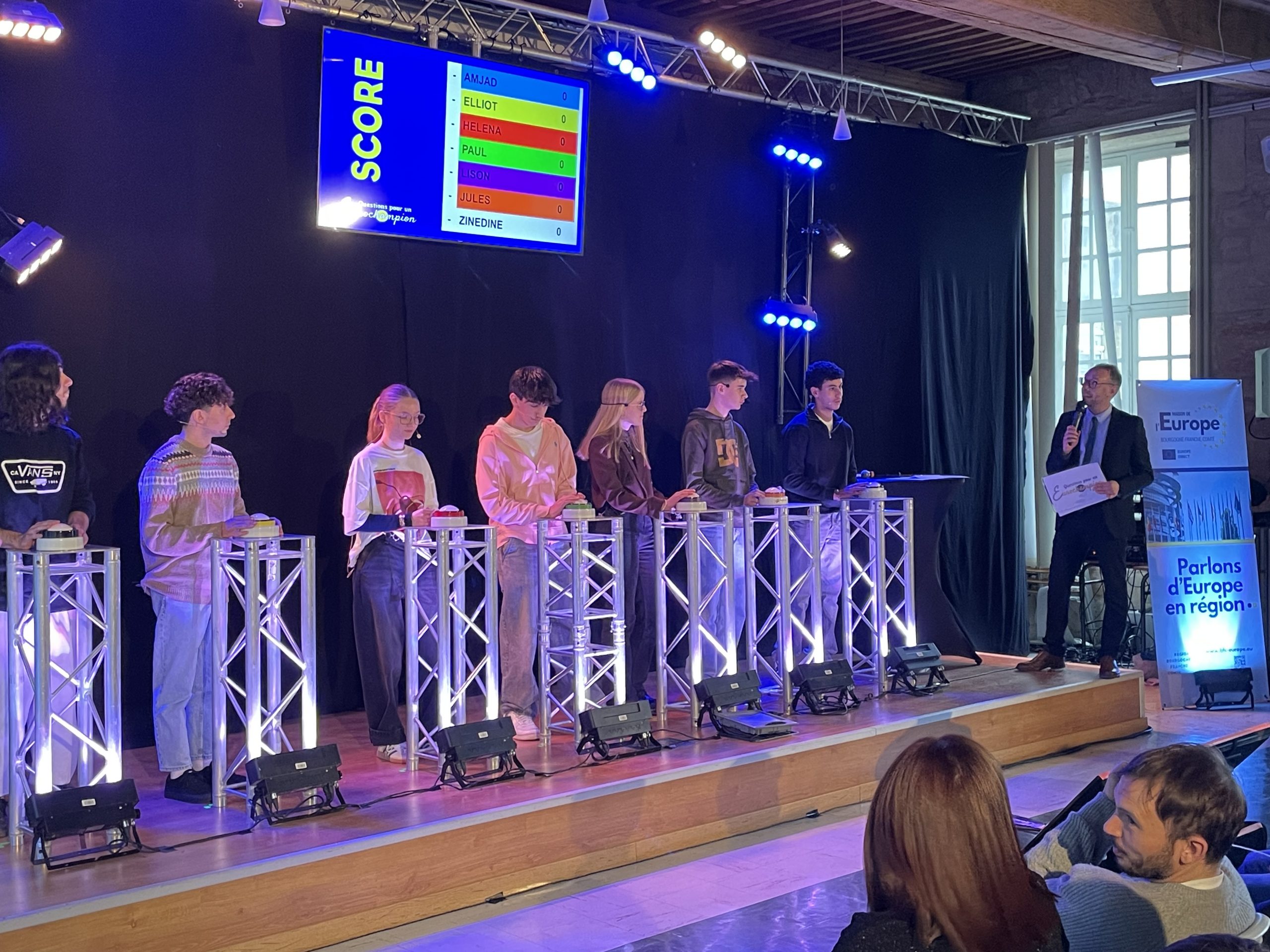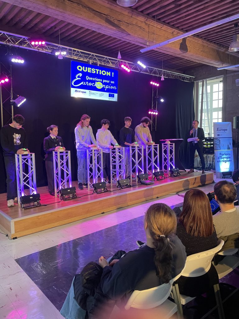 Trois élèves du LDN ont participé le jeudi 13 mars à la finale de “Question pour un Eurochampion” organisée par la Maison de l’Europe de Bourgogne Franche-Comté. Il a fallu braver la neige pour arriver jusqu’à Dôle. Au sein du très beau lycée Charles Nodier, Jean, Jules et Hugo ont affronté 75 candidats venus de lycées de toute la région. Une expérience enrichissante et ludique célébrant la diversité culturelle européenne.