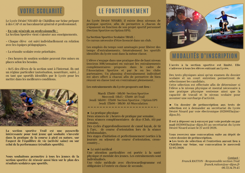 – Entretiens et tests physiques et techniques sur convocation ( test : Course à pied 12′ VMA, Trail de 2500 m).